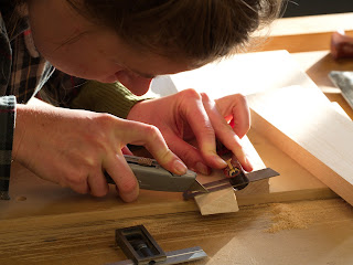 With the ability to detect straight lines, we were able to then construct winding sticks. Most of the students completed those today. They required jointing of edges, gluing up laminations, creating parallel edges, precision cuts, creating bevels with planes, and trimming end grain. In short, many lessons were contained within these deceptively simple tools. As sawing and planing skills progress, we will soon be working on building try squares. It is quite a feeling to use a layout tool, accurate to a thousandth of an inch, which was created by hand!
